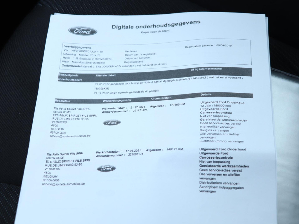 Deze Ford Mondeo wordt afgeleverd met 3 maanden garantie op motor en versnellingsbak, een nieuwe APK, vloeistofcontrole, reinigingsbeurt, gegarandeerde kilometerstand (NAP) en de tenaamstelling van het voertuig bij ons op locatie. De distributieriem is vervangen bij 148.000 km in 2021, dit moet opnieuw gebeuren bij 348.000 km of in 2031.