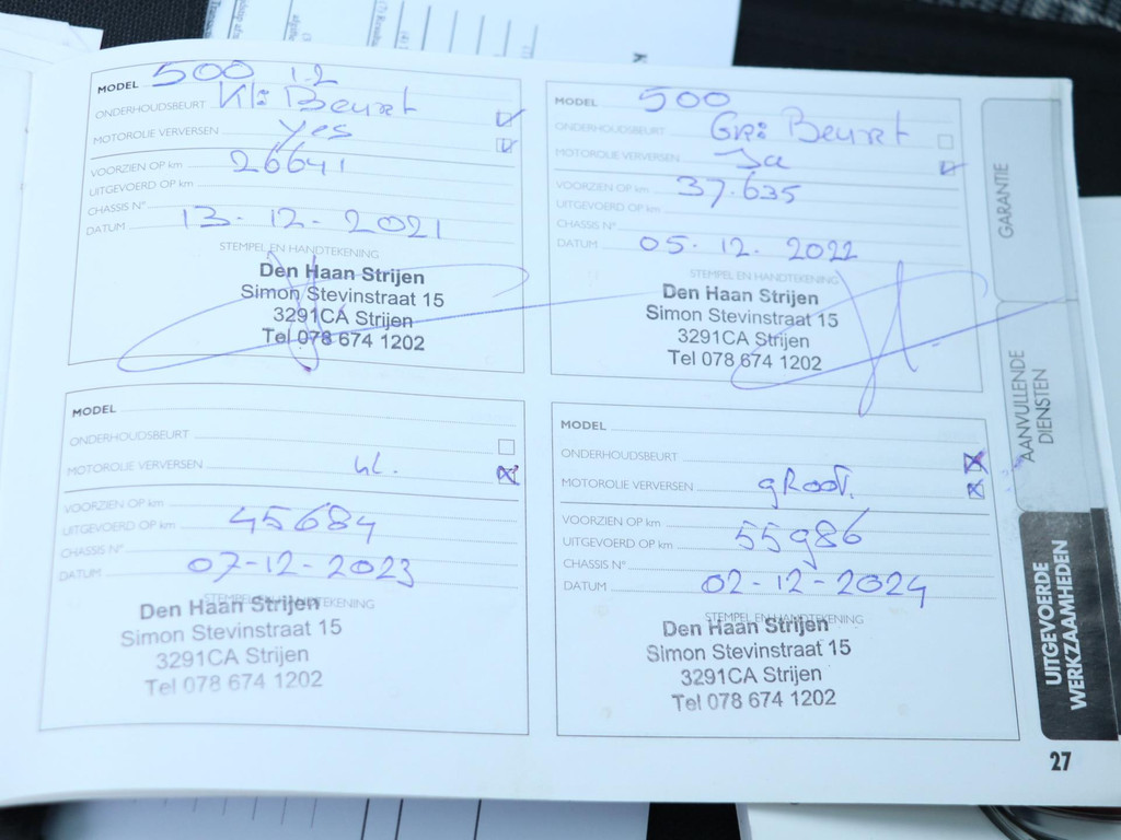 - Onderhoudsboekje aanwezig?
