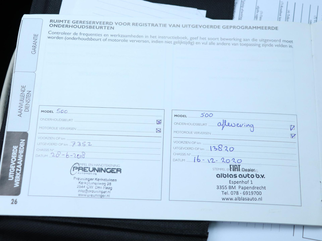 Deze Nederlands geleverde Fiat 500 is afkomstig van de tweede eigenaar en wordt afgeleverd met 3 maanden garantie op motor en versnellingsbak, een nieuwe APK, vloeistofcontrole, reinigingsbeurt, gegarandeerde kilometerstand (NAP) en de tenaamstelling van het voertuig bij ons op locatie.