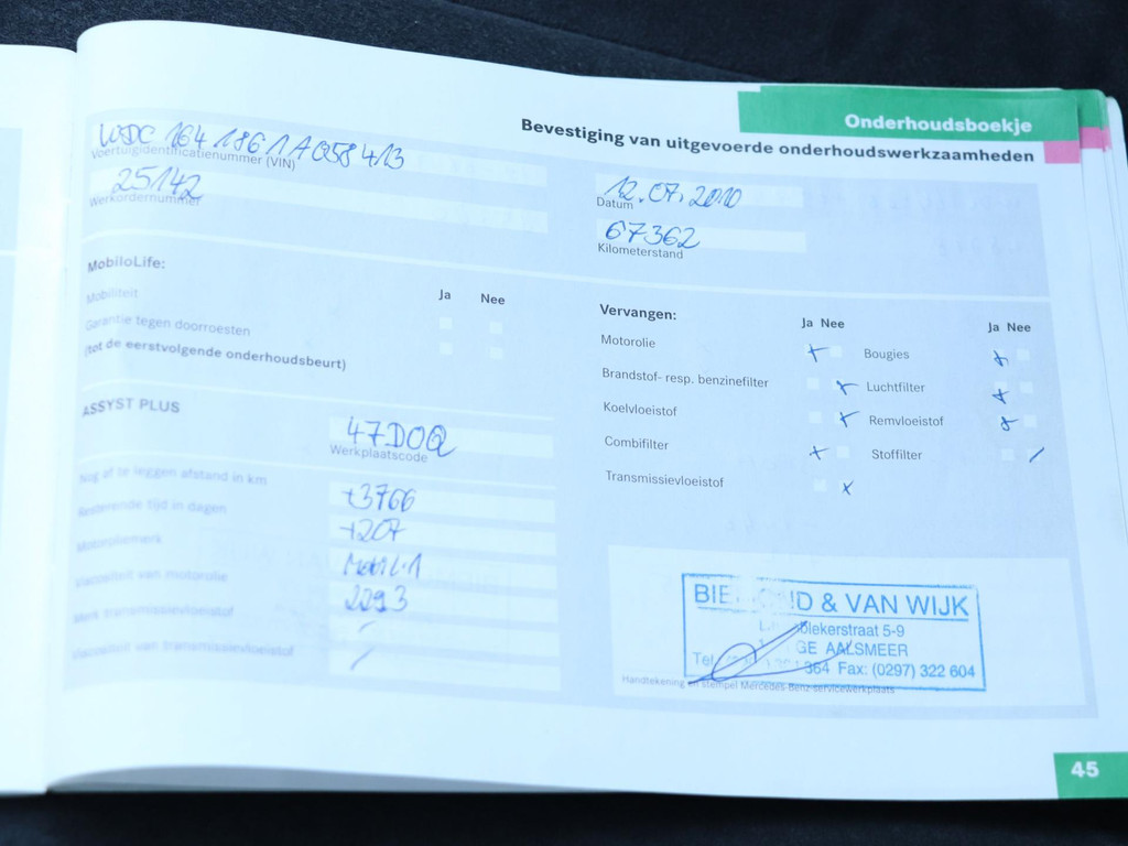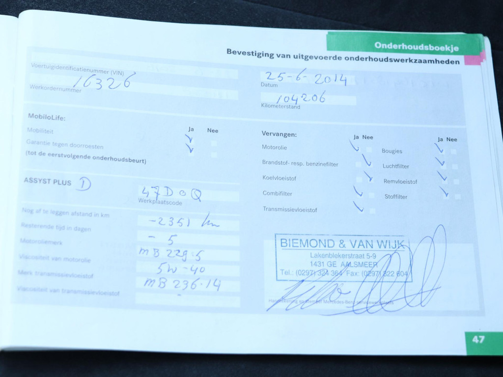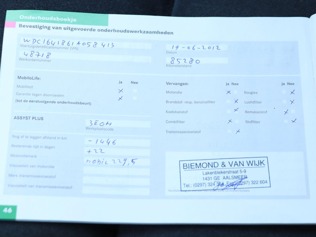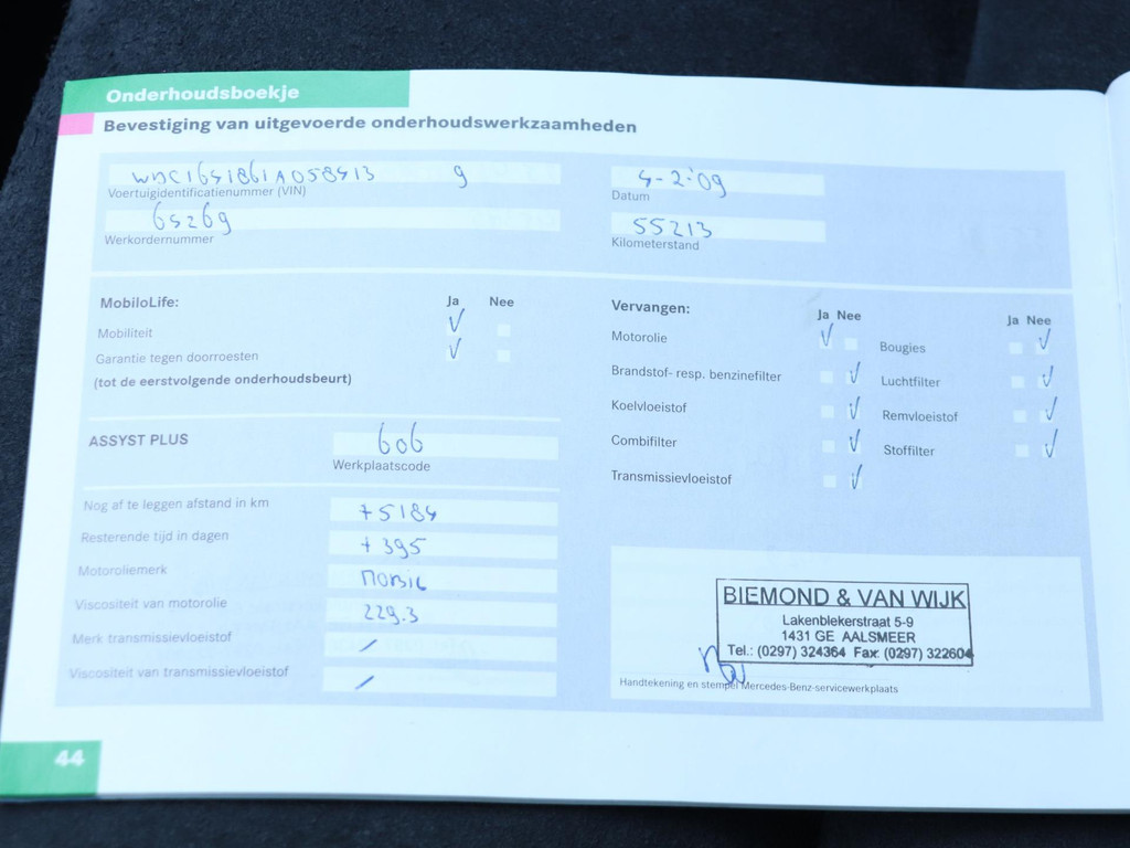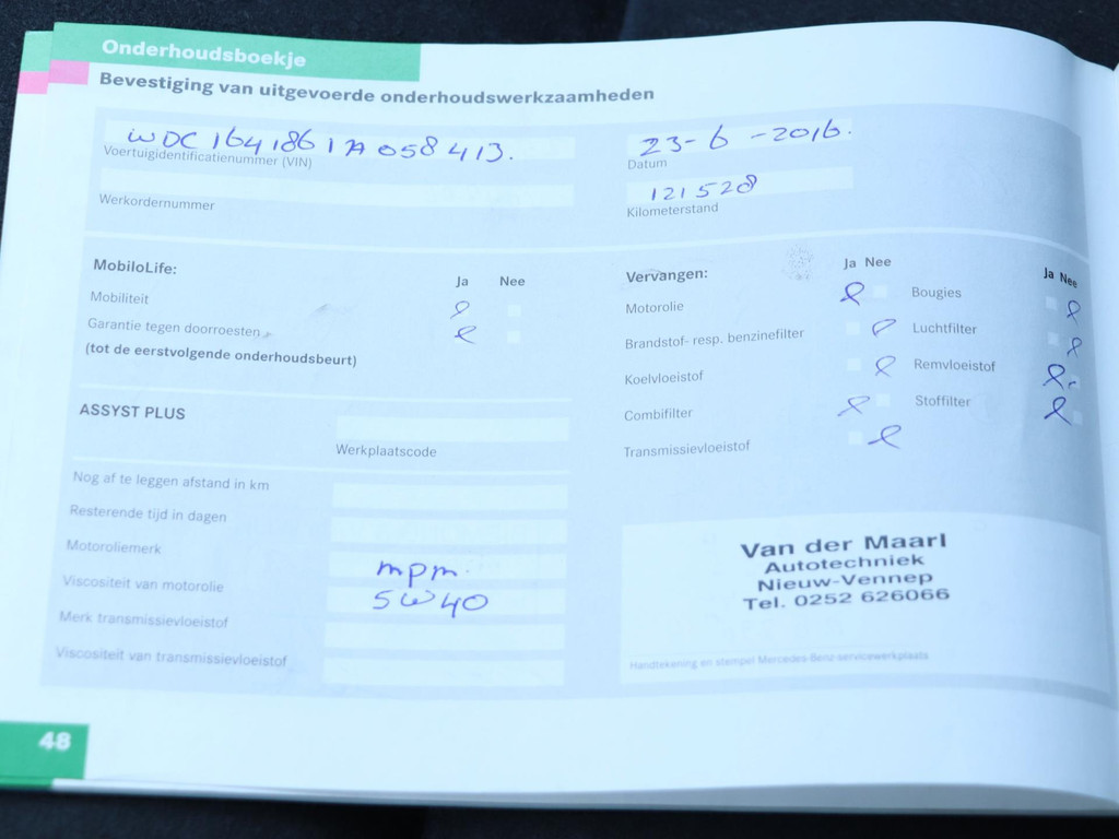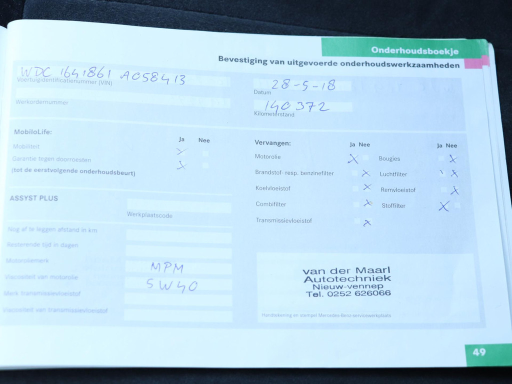 - Onderhoudsboekje aanwezig?