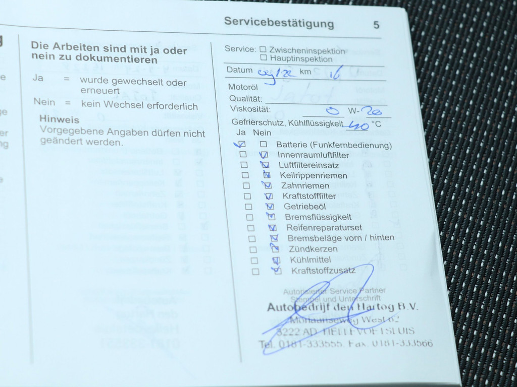 - Onderhoudsboekje aanwezig?