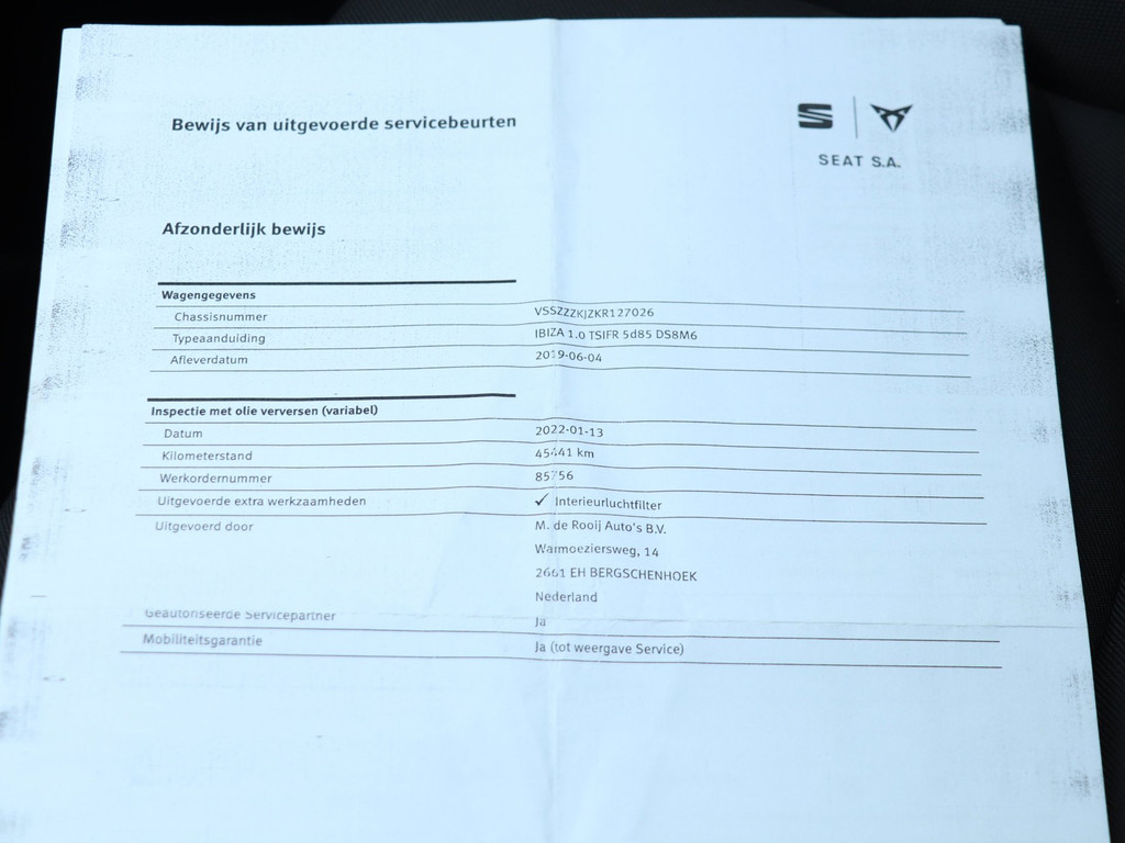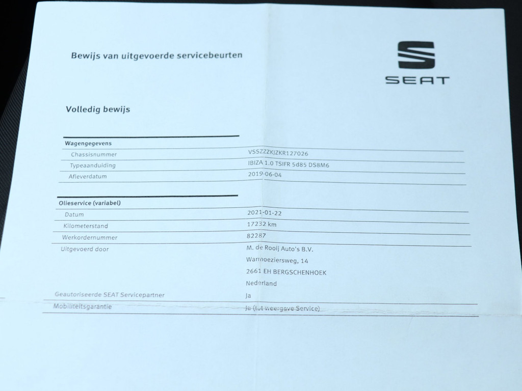 Deze Seat Ibiza wordt afgeleverd met 3 maanden garantie op motor en versnellingsbak, een nieuwe APK, vloeistofcontrole, reinigingsbeurt, gegarandeerde kilometerstand (NAP) en de tenaamstelling van het voertuig bij ons op locatie.