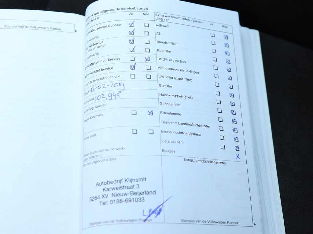 - Onderhoudsboekje aanwezig?