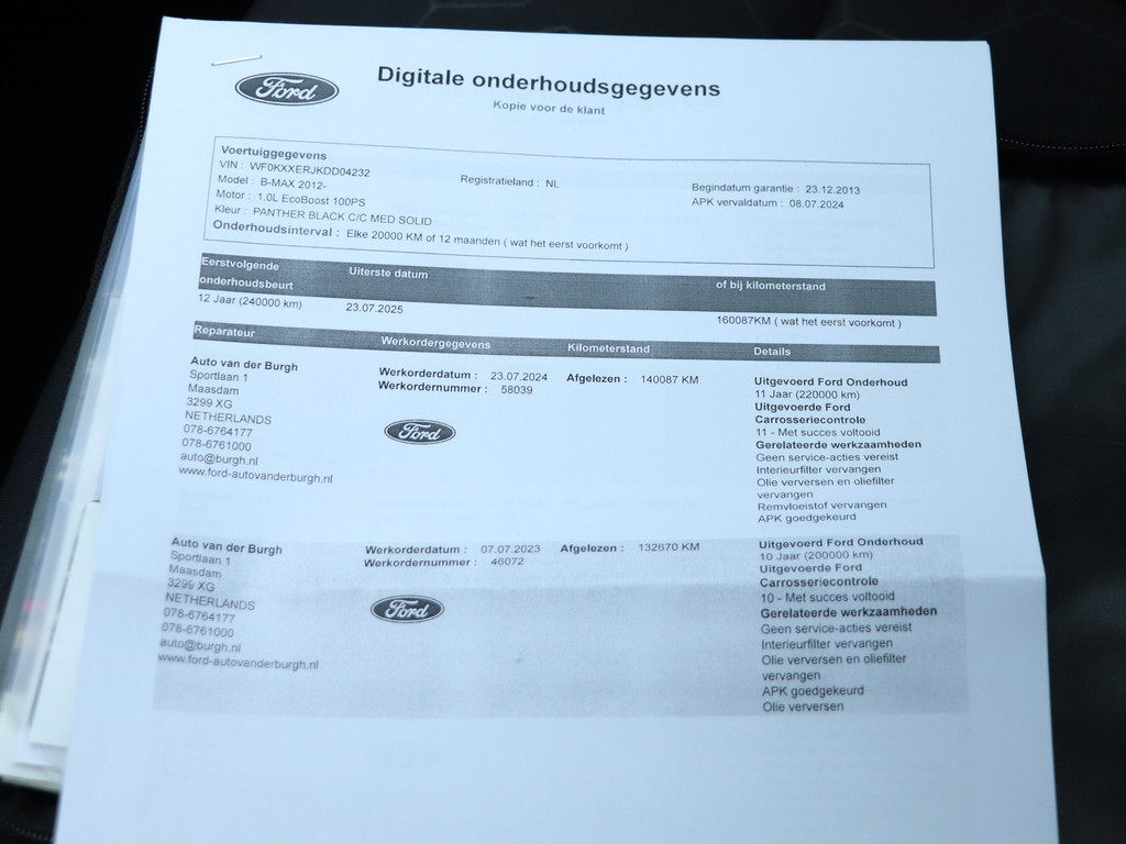 Deze Ford B-Max wordt afgeleverd met 3 maanden garantie op motor en versnellingsbak, een nieuwe APK, vloeistofcontrole, reinigingsbeurt, gegarandeerde kilometerstand (NAP) en de tenaamstelling van het voertuig bij ons op locatie.