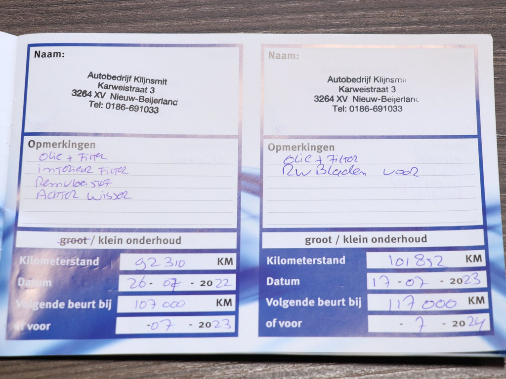 - Onderhoudsboekje aanwezig?